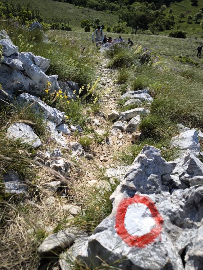 Obujemo čevlje in se mimo pasjega laježa odpravimo navkreber. Že takoj na začetku se odpre lep pogled na dolg, ozek zaliv, ki se vije proti plominski luki. Zagrizemo v klanec, kjer se vse okrog nas bohotijo sredozemska zelišča in ostalo tipično rastje. V zraku pa čudovite vonjave, ki božajo naše nosnice.