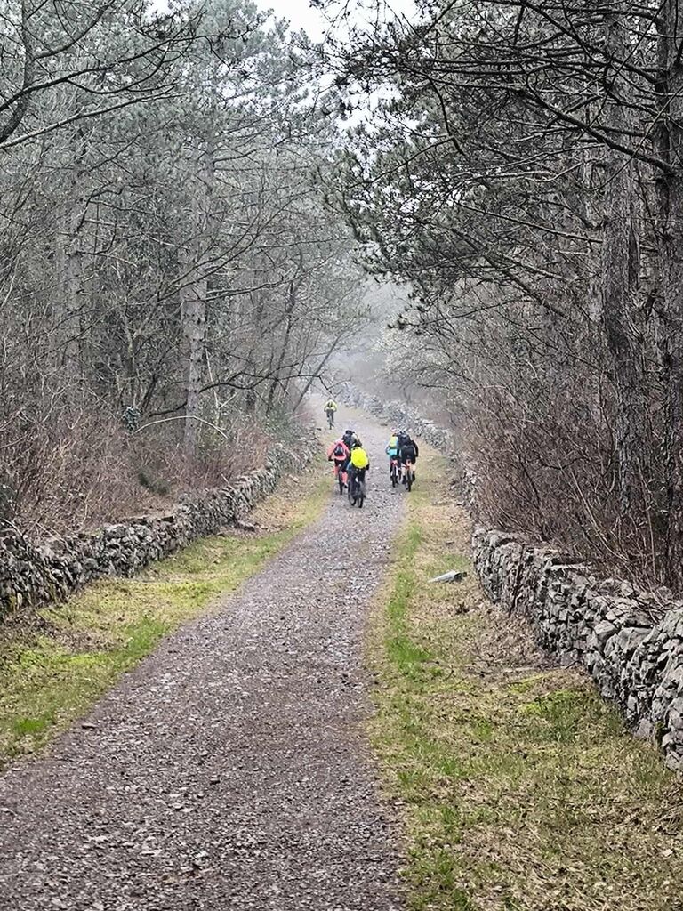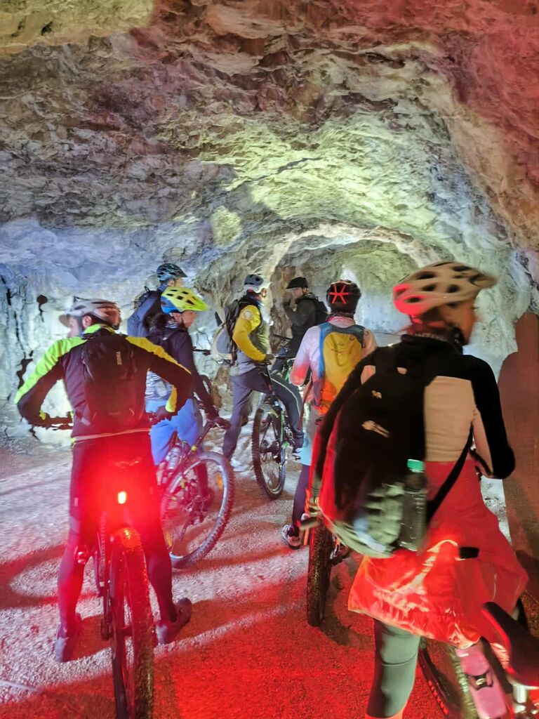 Sledil je vzpon na Brestovec. Tam smo se zapeljali skozi podzemne položaje in obdelali tematiko prve svetovne vojne ter soške fronte. V tem zgodovinskem ambientu smo ponovili tudi osnove turnega kolesarjenja – varno gibanje skupine, tehniko vožnje in ključne poudarke za začetek sezone.