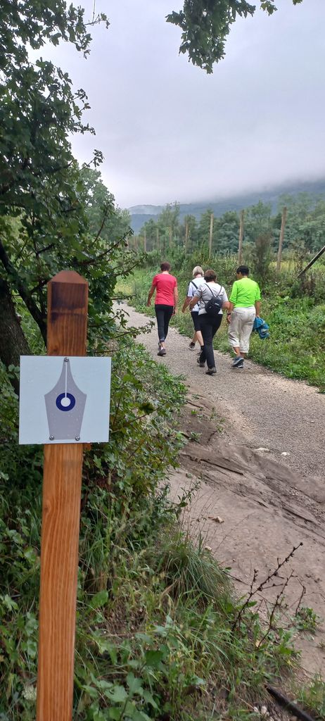 Za ogrevanje pred jesensko sezono kratkih pohodov društva Most je vodja Vesna Bratina izbrala Lokarjevo pot. Uradno so jo predali namenu maja letos in s tem obeležili 130 letnico rojstva znamenitega ajdovskega pisatelja in zdravnika. Pot se sicer začne pred Lokarjevo rojstno hišo, toda Vesna je iz praktičnih razlogov zborno mesto oklicala na parkirišču za Lokarjevo hišo. Prva postaja poti, ki je označena z zelo domiselnim znakom, nalivnim peresom z modro markacijo, je ob Lokavščku, kjer se je Lokar rad kopal ('Kopelca') in kjer ga je v fotografski objektiv ujel njegov veliki prijatelj in umetniški sopotnik Veno Pilon. Pot se potem zložno vije proti Lokavcu, kamor je Lokar hodil na obisk k sorodnikom, v zaselku Čohi pa zavije proti Gorenjam. Na najvišji točki (250 m nadmorske višine) je ob robu asfalta označena energijska točka. Pohodniki so skušali s točke posrkati porabljeno energijo, kaj več pa je niso niti več potrebovali, saj gre pot mimo izvira Hublja samo še navzdol.