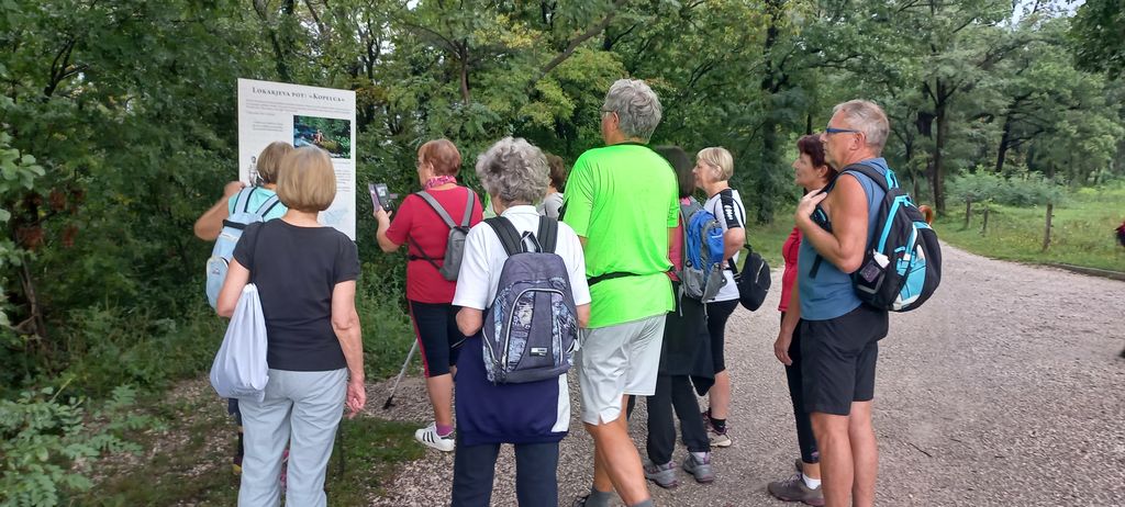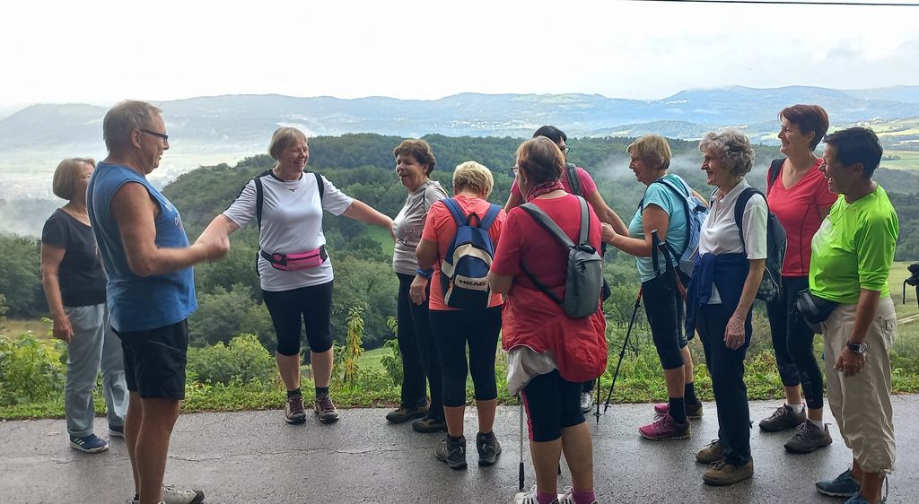 Nestabilno vreme oziroma nočno deževje je najbrž mnoge odvrnilo od pohoda, pogumnejša petnajsterica pa se je opremila z dežniki, ki pa so ostali v nahrbtnikih. Še več, po nekaj manj kot dveh uricah hoje in dobrih sedmih kilometrih, je pohodnike sonce že pošteno ogrelo.