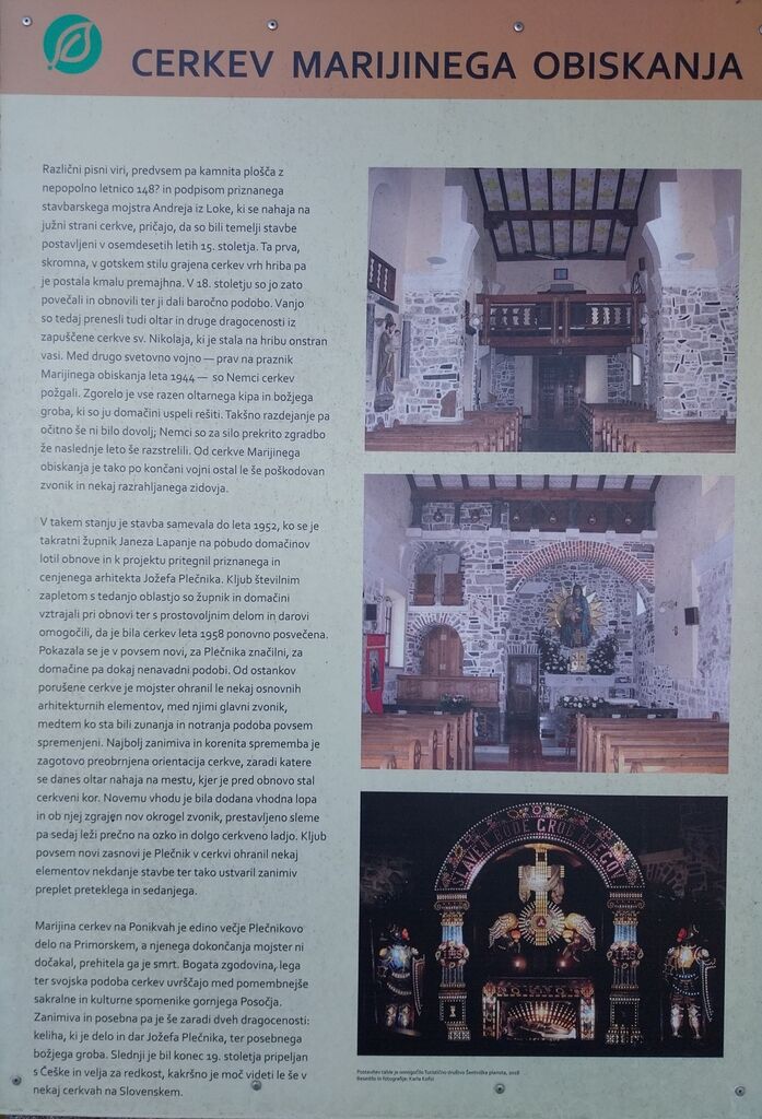 V soboto se nas je zbralo za poln avtobus in zapeljali smo proti sotočju Bače in Idrijce ter v Slapu ob Idrijci zavili proti Ponikvam. Povzpeli smo se na hribček do cerkve Marijinega obiskanja, ki je edina sakralna mojstrovina arhitekta Jožeta Plečnika na Primorskem. Prvotno gotsko cerkev iz 15. stoletja so Nemci namreč požgali. Od tam smo občudovali lepo urejen kraj in okolico pod nami. Izvedeli smo tudi, od kod ime Ponikve. Planota praktično nima vodotokov in ob dežju se v vasi naredi kar jezerce, ta voda odteče potem v požiralnike, ki jim domačini rečejo 'ponikva'. Naš pohod smo nadaljevali mimo travnikov in skozi gozd do smučarskega centra, kjer je svojo pot začel naš skakalec Jaka Hvala. Imajo dve skakalnici in smučišče.