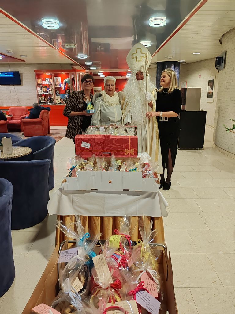 Že med letom so naše članice v delavnici ročnih del kvačkale košarice, katere smo napolnili z lešniki in jih darilno opremili. Skupno 150 košaric smo po končanem Bazarju v Čatežu, kot novoletno darilo ZDIS, poklonili vsem prisotnim predstavnikom Društev invalidov Slovenije. Ker smo bili vsi invalidi vse leto 2023 zelo pridni, nas je prav ta dan v Čatežu obiskal sv. Miklavž, ki nam je pri delitvi priskočil na pomoč.