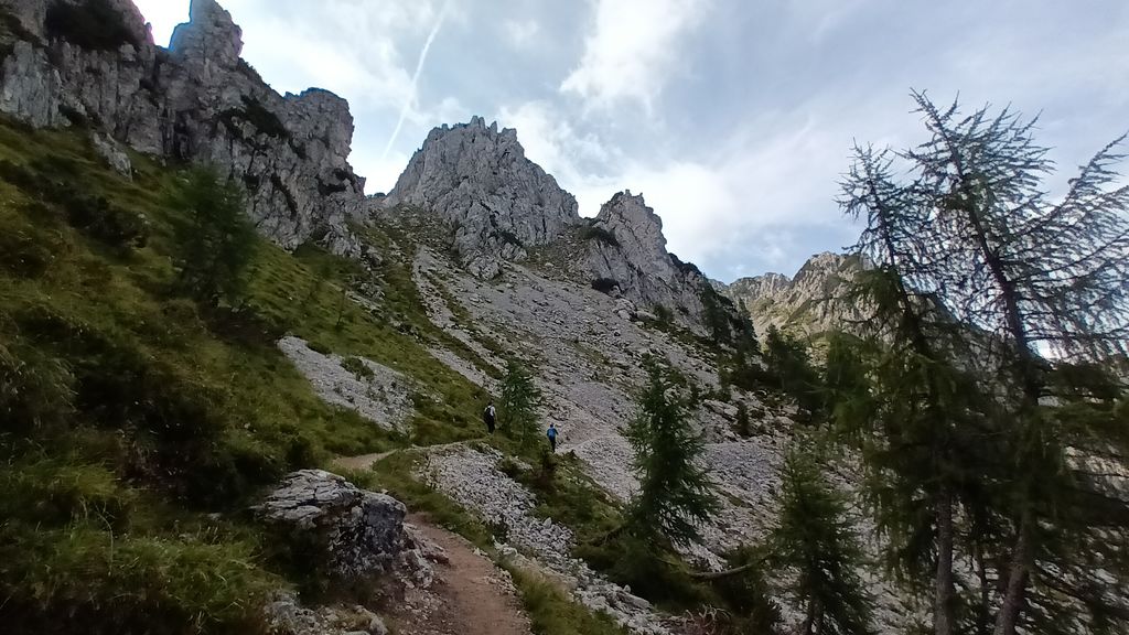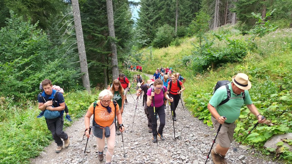 V Žabnici smo se delili, nekateri so se odpeljali z gondolo na Svete Višarje in se povzpeli na Kamnitega lovca; drugi smo vzeli pot pod noge in jo peš mahnili na Svete Višarje. Kmalu so nas v varstvo sprejela mogočna drevesa in spodbujal nas je hudournik, ki je spremljal našo pot. Suše ni bilo čutiti. Nekateri, strastni gobarji, so vrgli kakšno oko po tem slastnem darilu narave.