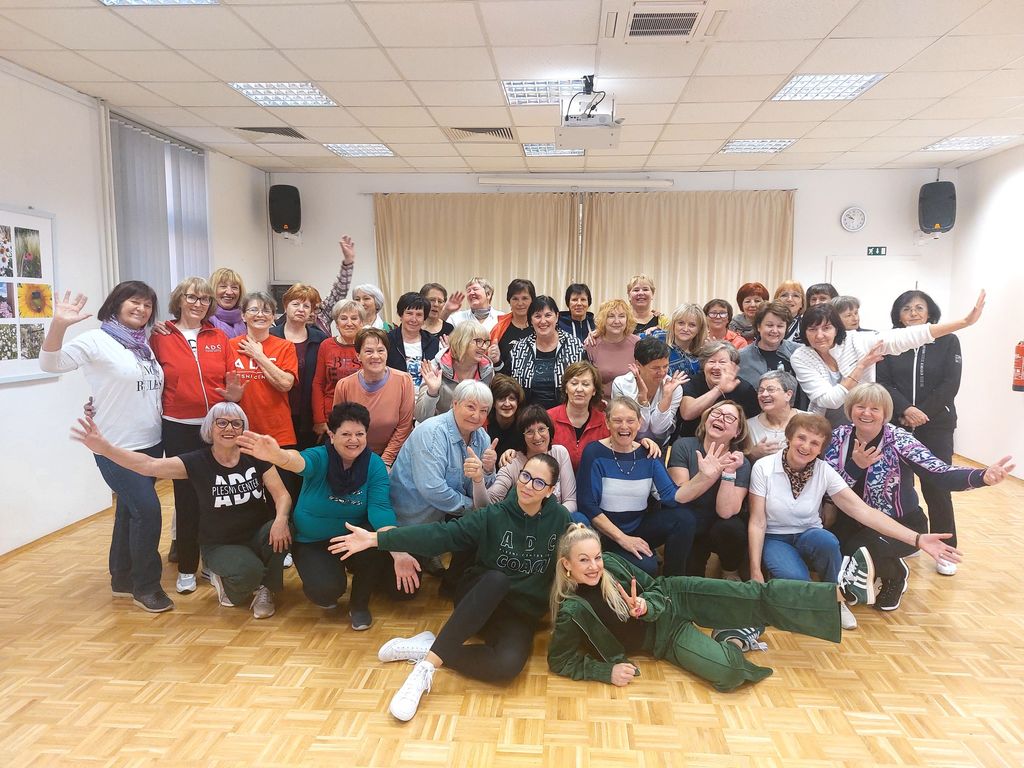 V letošnjem študijskem letu plešemo štiri skupine plesa posamezno: Ajdice že 23. leto, prva skupina osmo, 5KE drugo leto in začetna skupina, ki je najbolj navdušila s svojim živahnim nastopom. V skupinah nas je od 12 do 17 plesalk. Dve skupini plešeta pod mentorstvom Alice Stojko Saliu, dve pa vodi Lana Pizzoni. Skupne vaje in druženje smo imele prvič. Obeležile smo 8. marec, prvi dan pomladi in materinski dan. Hvala animatorki Ireni Vidmar za lepo pripravljeno srečanje, ki pa gotovo ni zadnje.