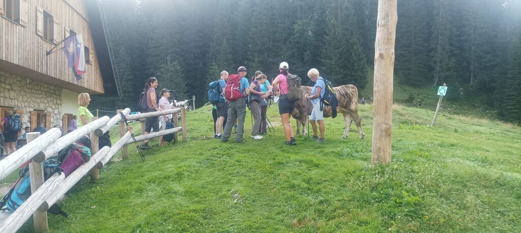Trije kombiji in še osebna vozila so pogumno rezali cesto po Gorenjski, ki je bila dobro obiskana že zarana, vendar je bila gneča obrnjena v drugo smer. Bohinjsko jezero je še počivalo v jutranji meglici, ko smo se že vzpenjali s planine Blato, kjer smo parkirali vozila. Mogočna drevesa so nam nudila zavetje, pozdravi nekaterih pohodnikov so nas dokončno prebudili. Planina pri Jezeru je že živela nov dan in nam mimogrede zaželela srečo. Dedno polje smo samo obšli in si obljubili, da bodo žganci in kislo mleko bolj teknili ob povratku.