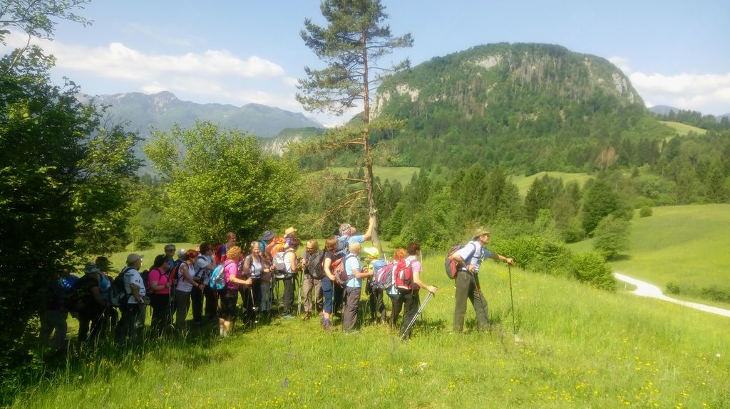 Do vrha nas je čakala še močna, a kratka strmina. Z vztrajnimi, počasnimi in previdnimi koraki, smo strmino z lahkoto premagali. Na vrhu smo bili nagrajeni  z lepimi razgledi. Kljub nizki nadmorski višini, z Rudnice pogled seže daleč naokoli na Zgornjo Bohinjsko dolino z vasicami Studor, Češnjica, Jereka in okoliške vrhove. V občudovanju lepot smo se za nadaljevanje poti še okrepčali. Med hojo nas je vodnik in varuh gorske narave Mirko seznanil z vrstami in imeni mnogih cvetlic. Da je pohod potekal tako kot mora, je poskrbel tudi vodnik Božo.