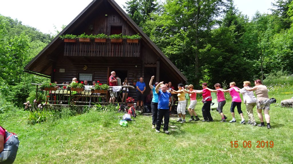 Vroči dnevi so nas nagnali v hladnejše kraje. Pohodniki Mosta smo se odpravili v Javorniške gozdove in med cvetoče travnike po manj poznanih poteh in stezah. Preko 13 km dolg pohod z nekaj vzponi in spusti, nas je kljub dopoldanski koprenasti oblačnosti, večkrat spotil. V veseli družbi nas je Jožica popeljala mimo gostoljubnih znancev do njihove hišice na pravljični jasi. Ob odličnem divjačinskem golažu s polento smo se kar veselo razživeli. V popoldanskih urah smo se žal morali posloviti od gostiteljev in se vrniti v vročo dolino.