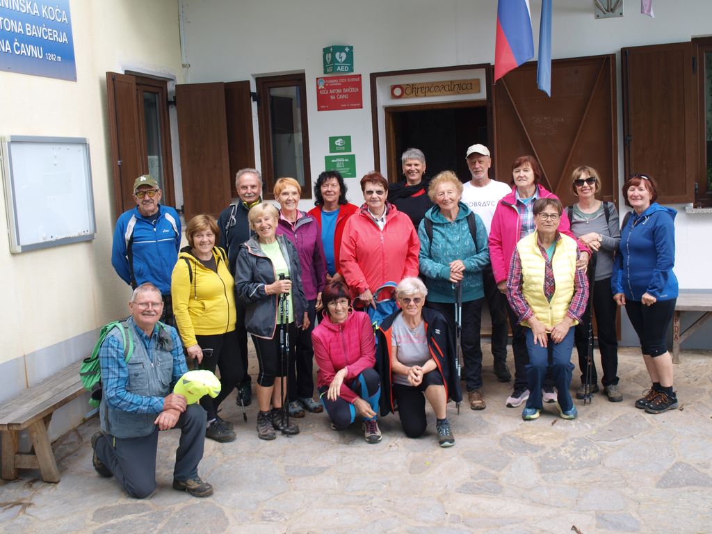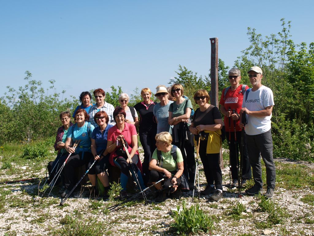 V petek, 16. junija, smo se odpravili še na zadnji krajši pohod v tem študijskem letu v okvoru Društva MOST. Z avtomobili smo se iz sončne Ajdovščine odpeljali do planinske koče Antona Bavčerja na Čavnu, kjer se je zbralo 17 pohodnikov. Pred kočo nas je prijazno pozdravil oskrbnik Branko Blaško in seveda tudi hišni čuvaj – radovedni simpatični štirinožec. Vendar se pri koči nismo zadrževali. Najprej delo, nato zabava! Tokrat je bila naša Vesna skrivnostna, za smer pohoda smo izvedeli šele na štartu! Najprej smo se ustavili na razgledni točki Beverca, od koder se razprostira čudovit pogled na planoto Gora, Vipavsko dolino in vipavske griče, ob jasnem vremenu pa seže čez Kras vse tja do morja. Tokrat so našo prelepo dolino zastirale nežne meglice, ki so ji ob prebujajočem soncu dajale še prav posebno čarobnost! Nato pa nas je Vesna vodila po nam večinoma nepoznani poti proti Velikemu Modrasovcu (1353 m n.v.), ki je najvišji vrh grebena Čaven na južnem robu Trnovske planote. V prejšnji državi je bilo tu zaprto vojaško območje, ki ni bilo dostopno za pohodnike. Šele pred nekaj leti pa so ajdovski planinci uredili in označili pot do vrha in od takrat Veliki Modrasovec počasi pridobiva svojo prepoznavnost. Pot je bila prijetna, saj je vodila skozi gozd, ki nas je ščitil pred vročino in pripeko. Na vrhu stoji stara vojaška zgradba, ki pa so jo zasuli in služi kot razgledna točka. Pogled od tu seže na Golake, Kamniške Alpe, levo od Golakov pa na Julijske Alpe, Triglav in bližnji Krn.
