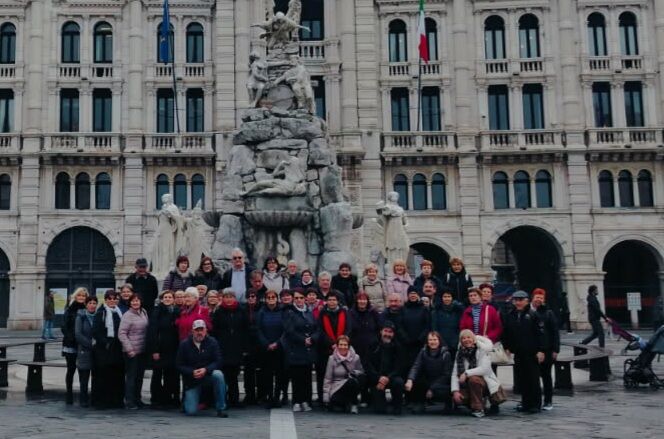 »Trst je naš,« je priljubljen izrek, ki pa mu zares nihče ne verjame, saj ni bil povsem naš niti tisti dober mesec po 1. maju 1945, ko je IX. Korpus pregnal Nemce iz njega. Ga pa je sredi letošnjega januarja 'zavzelo' pol stotnije članic in članov zgodovinskega krožka UTŽO Društva Most. Pohod smo začeli na Griču sv. Justa, ki je zgodovinsko središče mesta - ostanki rimske (civilne) bazilike pričajo o tem. Nad njo se pne srednjeveški grad, v bistvu utrdba, ki so jo glede na potrebe (nevarnosti) dozidavali. Imenitna sakralna znamenitost je stolnica, ki pod isto streho iz začetka 14. stoletja združuje ostanke zelo stare cerkve in poznejše kapelice za relikvije sv. Justa.