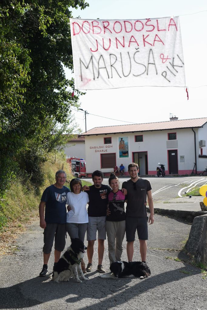 Sovaščani so Maruši in Pikiju pripravili čudovit sprejem, ki je bil zelo čustven, saj jo je pričakala družina in kar nekaj sovaščanov. Gasilsko društvo PGD Šmarje ji je pripravilo vodni slavolok, skozi katerega sta se podala skupaj s Pikijem. Po sprejemu so vsi skupaj poklepetali ob narezku in domačimi dobrotami, ki jih je pripravila kmetija Orel s pomočjo krajevne skupnosti Šmarje. Kavarna Cukr pa je spekla okusno torto, ki je bila del presenečenja, poleg tega pa je mesnica in trgovina Tošč dobrodušno podarila meso za žar, zato je bil sprejem še toliko lepši. Maruša je zelo pozitivna in energična oseba. Njena družina in sovaščani so ponosni nanjo in je marsikomu v navdih, saj moraš biti za tako dolgo pot res dobro psihično pripravljen.