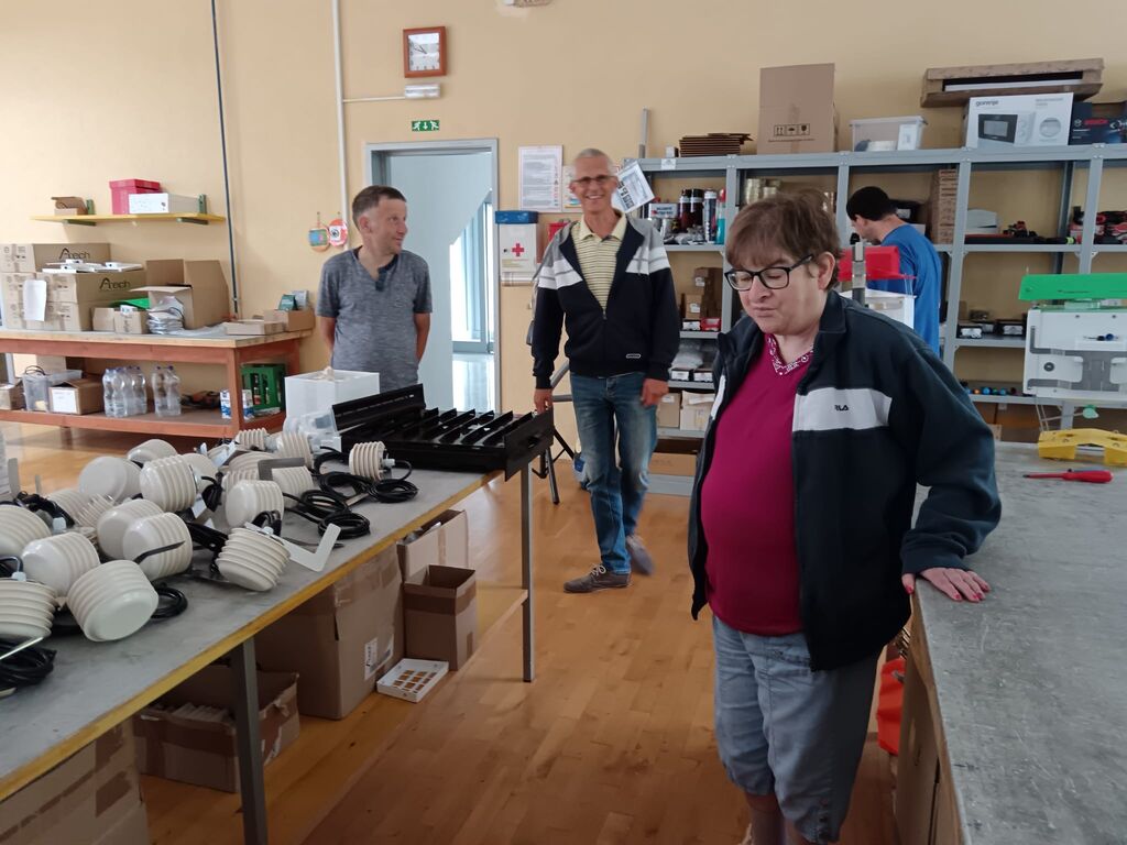 V začetku avgusta pa se je skupina uporabnikov odpravila na obisk podjetja EFOS v Postojni, kjer so prevzeli nov material za delo in oddali narejene izdelke. Gospod Tadej jih je prijazno sprejel in pripravil pravo 'strokovno ekskurzijo', predstavil delovne prostore ter pojasnil proizvodne procese. Uporabniki so tako pridobili dragocen vpogled v delo, ki ga opravljajo skupaj s podjetjem, in bolje razumeli pomen svojega prispevka v celotnem procesu.