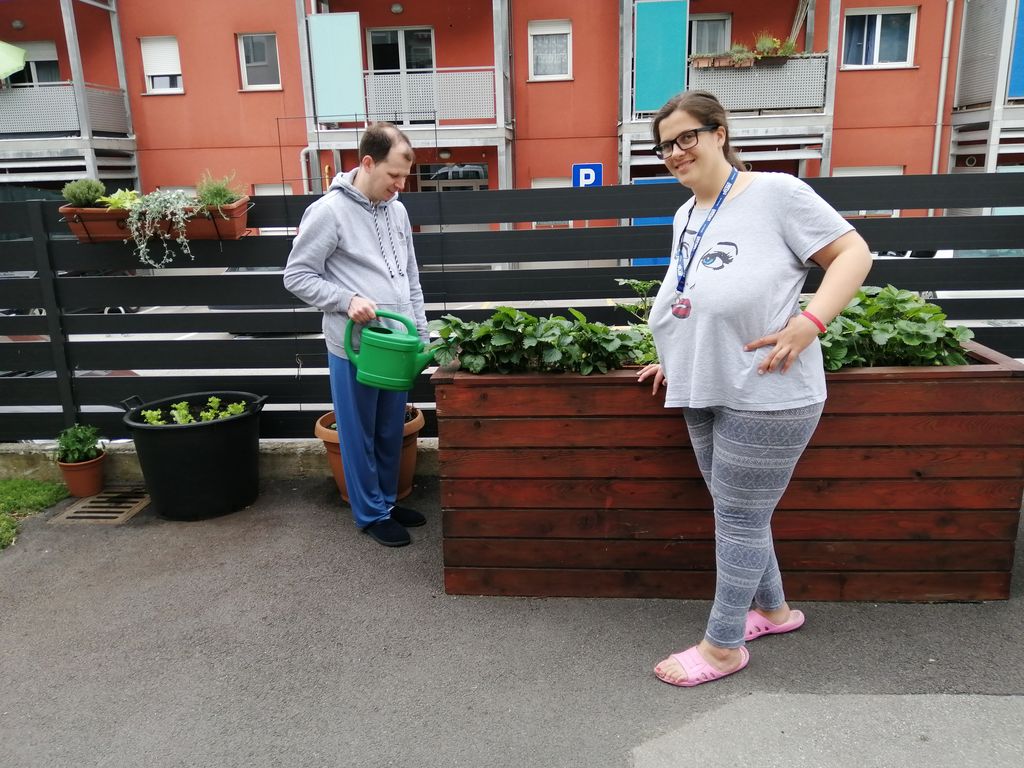 Proizvodno in ustvarjalno delo v naših delavnicah nas izpolnjuje, saj nam krajša čas in nas polni z občutkom, da znamo sami izdelati in narediti veliko koristnega. Ta občutek dodatno okrepijo sodelovanja z drugimi organizacijami v našem okolju. Prav na zadnji dan meseca maja smo se v okviru projekta Garaža, ki deluje pod okriljem Zavoda Beta iz Ajdovščine, urili v izdelavi paletnega pohištva. Topli pomladni dnevi so v nas prebudili željo po vrtnarjenju. V gredo ob naši stavbi smo zasadili nekaj sadik zelenjave, v korita pa rože – za lepši pogled na teraso. Ponosni smo na priznanje 'Občina Vipava cveti', ki smo ga prejeli v lanskem letu za vzorno ureditev in urejenost zelenic in okolice. Najdragocenejše priznanje od vseh pa je občutek, da nam je tu resnično lepo kot doma.