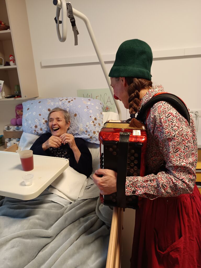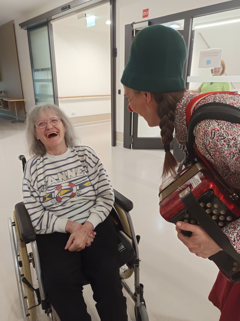 Stanovalci so Tonko spraševali, ali je to njena služba, a hitro je bilo jasno, da gre za poslanstvo. Njena dobra volja ni ostala le pri stanovalcih, nalezla je tudi zaposlene. Tudi Tonka je pohvalila naš dom in povezanost, ki jo čuti med stanovalci in zaposlenimi. Majhen rdeč nosek, a tako velik učinek!