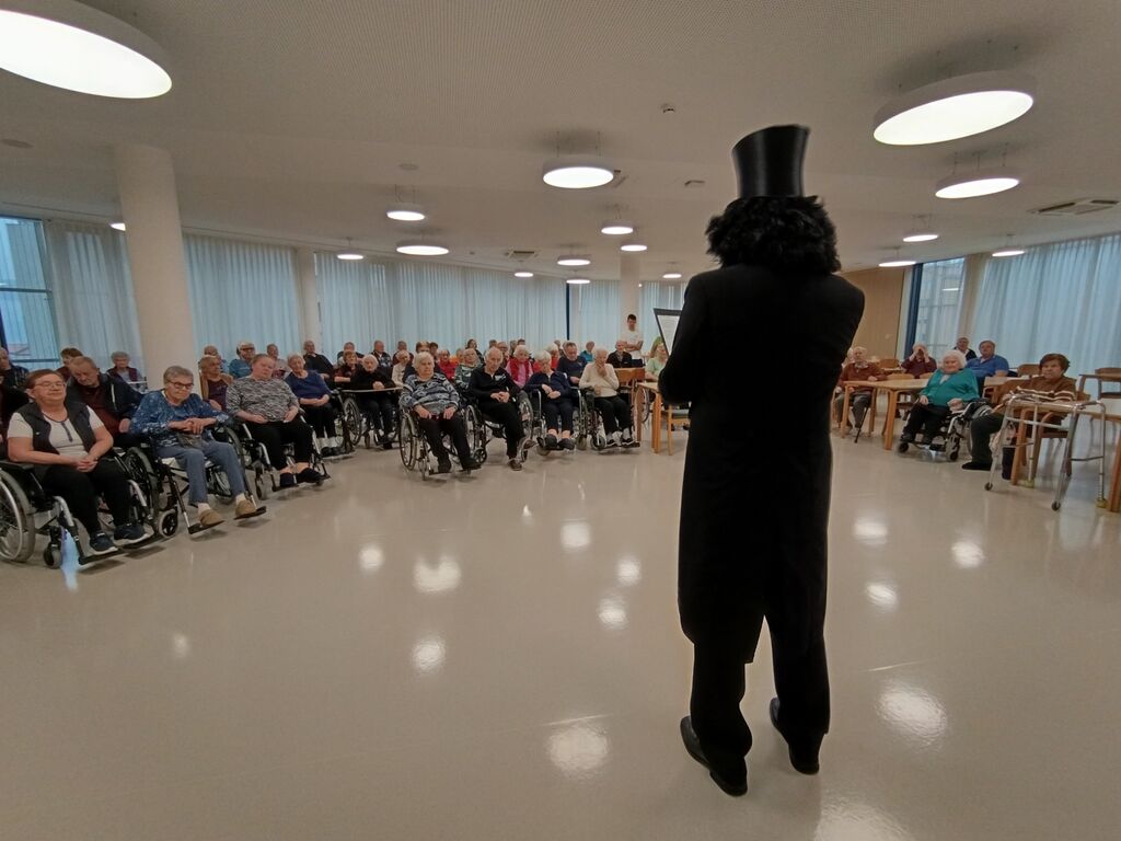 Tonka je v naš dom prinesla pravo dozo sonca. Najprej se je predstavila širši družbi, nato pa se je podala od sobe do sobe in si vzela čas za vsakega posebej. Pogovori, smeh, petje in celo kak plesni korak so celoten oddelek spremenili v mali festival dobre volje. Stanovalci so bili ganjeni in navdušeni - slišali smo: »A prav mene ste prišli obiskat?« in »Kako sem si pa jaz zaslužila tako čast?« Ena od stanovalk je celo povedala, da ji je obisk podaljšal življenje.