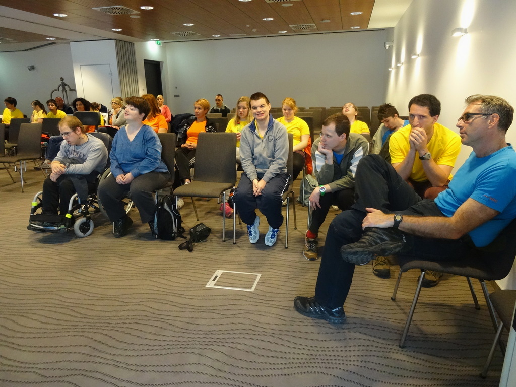 Naša vadba v fitnesu je zgledala nekako takole. Najprej smo se vsi skupaj ogrevali dvajset minut. Štefan, Klemen in Jasmina na sobnih kolesih. Janez na tekaški stezi. Potem je sledilo nekaj vaj klasične telovadbe, s katero smo krepili vse mišice v naših telesih. Na našem srečanju v aprilu smo se pobliže spoznavali tudi s fitnes napravami. Za nekatere izmed nas je bilo to nekaj novega in zanimivega. Za druge pa že pravo tekmovanje v moči. Telovadbo smo zaključili z raztezalnimi vajami. Zadovoljni, da smo nekaj naredili za svoje zdravje, smo se vrnili v naš dom in komaj čakali našega naslednjega srečanja v fitnesu.