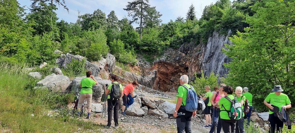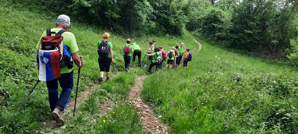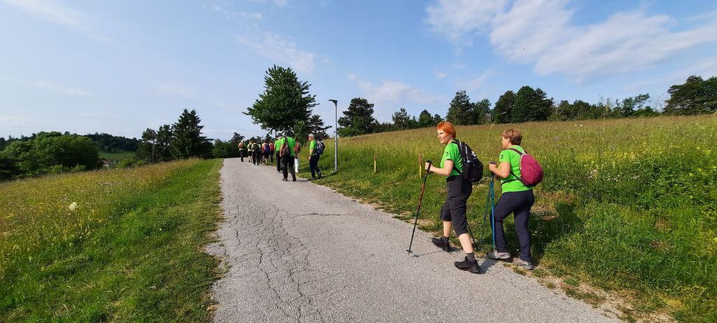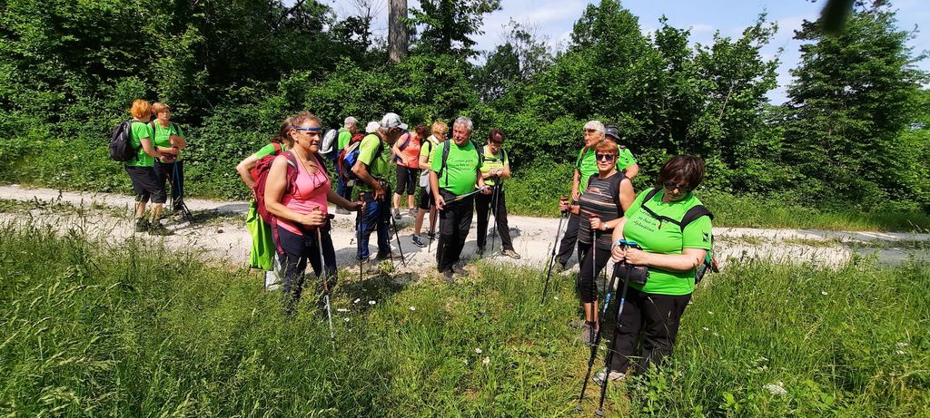 Zadnji topli dnevi so četrtkove pohodnike zvabili v hladnejše kraje. Odpeljali smo se v Pivko, kjer nas je pozdravil hladen vetrič s prijetno jutranjo temperaturo. Parkirali smo pri cerkvi sv. Petra, ki stoji na razgledni vzpetini nad Pivko. Korake smo začeli ubirati po cesti mimo železnice z obdanimi cvetočimi travniki. Ob pogledu nazaj sta bili vidni Pivška kotlina in Sv. Trojica. Pot se nato spremeni v makadamsko cesto, ki nas v nadaljevanju, v senci gozda, spremlja večji del poti. Pri opuščenem kamnolomu je bil čas za suha usta. Naprej se je pot rahlo vzpenjala do križišča s tablo, ki nas je v desno usmerila na Osojnico, naprej proti Vremščici. Tu se je začel še zadnji najbolj strm del poti, ki smo ga premagali v nekaj minutah in že smo bili na 820 metrov visoki Osojnici nad Pivko. Na vrhu je kamnita plošča s smermi neba, vpisna knjiga, žig in klopi. Osojnica je poraščena z gozdom, zato z nje žal ni lepega razgleda, a je kljub temu priljubljena pohodniška točka domačinov. Prijetno je bilo sedeti na klopi in nadomestiti izgubljene kalorije z dobrotami, za katere je poskrbel Franko, pa še pred objektiv nas je postavil. Z vrha smo se vračali po krožni poti, ki se je strmo spuščala po gozdnem kolovozu in je zahtevala previdno hojo. Nekaj metrov stran od poti je v gozdu kamniti križ, postavljen v spomin gozdarjem, ki so na Osojnici v letih 1894 do 1898 zasadili gozd črnega bora. Njihova imena so vklesana na križu in so še dobro vidna. Kamniti križi, teh je v občini Pivka veliko, so ena izmed najbolj trajnih in opaznih značilnosti kulturne in krajinske podobe Pivke od 17. stoletja do današnjih dni.