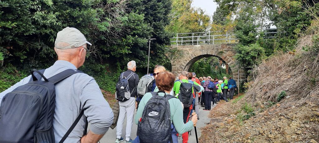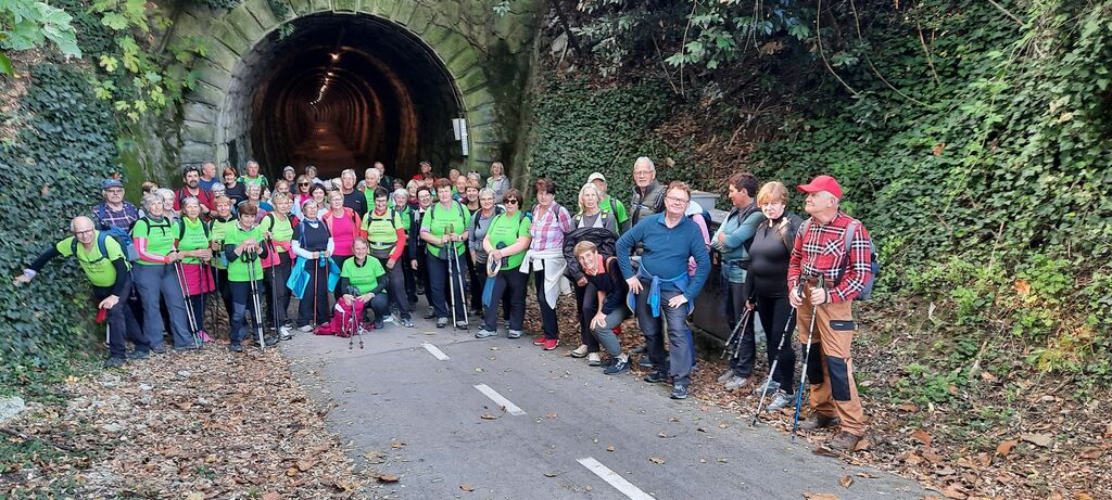 Vožnja do Sečoveljskih solin, kjer smo zapustili avtobus, je hitro minila. Pohod smo začeli po kolesarski in peš poti, Parenzani. Parenzana je ozkotirna železniška proga, ki vodi od Trsta v Italiji, skozi Slovenijo in do Poreča na Hrvaškem. Znana je tudi kot 'Pot zdravja in prijateljstva'. Ime je dobila po besedi Parenzo, to je v italijanščini ime mesta Poreč. Zato se ji reče tudi Porečanka. Obratovala je med letom 1902 in 1935. Pomembna je bila zaradi povezave zaledja z obmorskimi kraji in je tako prispevala h gospodarskemu razvoju Istre. Je tudi pomemben del turistične ponudbe. Celotna proga je dolga 123 km, cilj četrtkovih pohodnikov pa je bil prehoditi 14 km trase od Sečovelj do Izole. Korake, našteli smo jih kar dvajset tisoč, smo v dolgi koloni kot vlak, začeli nabirati po ozki cesti proti Seči. V Jernejevem kanalu s privezi za plovila, ki se deloma nahaja v Krajinskem parku Sečoveljske soline, smo hodili po dvostopenjskem mostovžu. Pred nami se je razprostiralo morje proti Portorožu. Nadaljevali smo po trasi nekdanje železnice, obdane z grmovjem. Hodili smo po poti ob obali, mimo telovadnice na prostem, do Lucije. Pazljivo smo prehodili vse prehode v mestu. Na izhodu iz Lucije pot pelje pod mostom – nadvozom pri postajališču v Portorožu. Most stoji na 38 km od izhodiščne postaje Trst. Nekoč je imel tri oboke, danes samo še enega. Na celotni progi je bilo osem predorov, dva v Sloveniji, ki smo ju tudi prehodili. Prvi in najdaljši predor na progi je predor Valeta, dolg 544 metrov in povezuje Portorož in Strunjan. Drugi predor je na poti med Strunjanom in Izolo, Šalet, dolg je 244 metrov. Do njega smo prišli po Strunjanski dolini - deželi kakijev in čudovitih razgledov. Vmes smo si vzeli čas za malico in skupinsko fotografijo. Slovenski del Parenzane je skoraj v celoti asfaltiran. Trasa je zaradi pozidave malo spremenjena, vodi pa med lepimi travniki, gozdički, vinogradi, nasadi oljk in kakijev, ki so v jesenskih barvah še posebej lepi. Nadaljevali smo proti Izoli, se sprehodili ob obali in do hotela Delfin, kjer so nam, kot se za Istro spodobi, pripravili okusne bobiče, in še kaj. Za konec … to je bil res dan za dušo in srce.