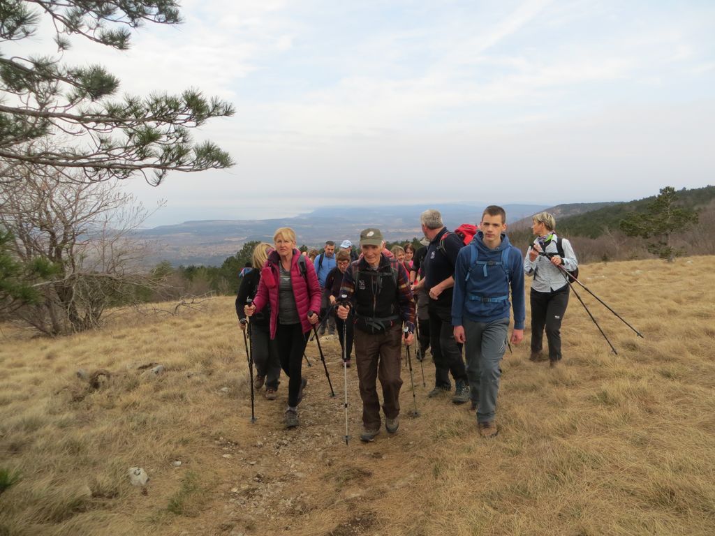 Na Slavnik vodi veliko poti, tokrat so se odločili za pot iz Prešnice. Sonce se je sramežljivo skrivalo za oblaki, ko so se vzpenjali vedno više in se med hojo veselo pomenkovali. Prehitro so bili na vrhu, kjer jih je pričakal mrzel veter in topla oblačila so kar prav prišla. Zavetje in okrepčilo so našli v Tumovi koči, ki stoji tik pod vrhom. Z vrha pa so se navkljub malo slabšemu vremenu ponujali prelepi razgledi, po katerih je Slavnik znan. Nekaj posebnega je bila tudi narava na Slavniku; skromna in pomirjujoča a polna spomladanskega cvetja, ki kaže na to, da se je zima že poslovila ali pa ... Prav mrzel veter jih je kar hitro pregnal v dolino, kjer so jih, kot se za pustno nedeljo spodobi, pred povratkom domov pričakali krofi in dišeča kava.