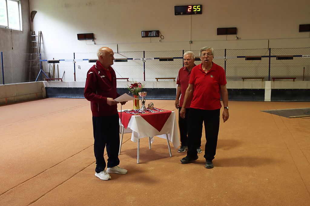 V moški konkurenci je bilo 16 ekip, zato smo jih razporedili na balinišče na Cesti. Ekipa DU Ajdovščina je dosegla prvo mesto in se neposredno uvrstila na državno tekmovanje, kjer bomo sodelovali kot ekipa in kot organizatorji državnega tekmovanja (predvidoma 7. oktobra). To bo za naše društvo organizacijsko velik zalogaj, pa tudi promocija našega društva in s tem tudi naše občine.