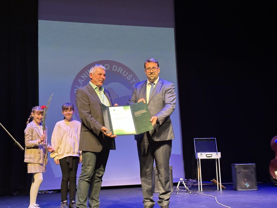 Praznično petkovo prireditev je počastil župan Tadej Beočanin in ajdovskim planincem podelil Spominsko plaketo. Z veseljem in ponosom smo sprejeli njegovo pohvalo in zaupanje v delo Planinskega društva Ajdovščina ter vero v njegovo moč in delo. Ob tem je predsednik Damjan Pregelj poudaril, da se je letos vrnila v društvo zgodovinska Spominska plaketa, ki jo je to prejelo ob 50-letnici delovanja.