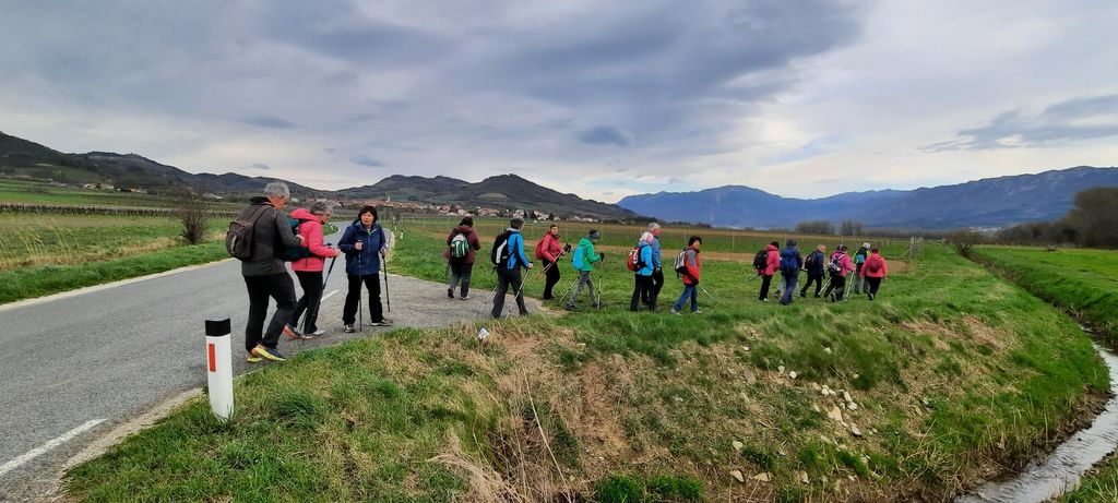 »Imenitni mojster Trošt je ta trdni most sturu, de vsak brez skrbi čez dirja,« je vklesano na spominski plošči na starem ločnem mostu čez Močilnik. Tu smo četrtkovi pohodniki pričeli krožno pot v okolici Slapa in Lož, krajih z bogato kulturno dediščino. Kmalu smo zavili s ceste in šli med travnike, sveže preorana polja in rumeni regratovi cvetovi so nas spomnili, da se pomlad prebuja v vsej lepoti. No, tudi oblaki so skušali prispevati k aprilskemu vzdušju, a tokrat brez dežja.