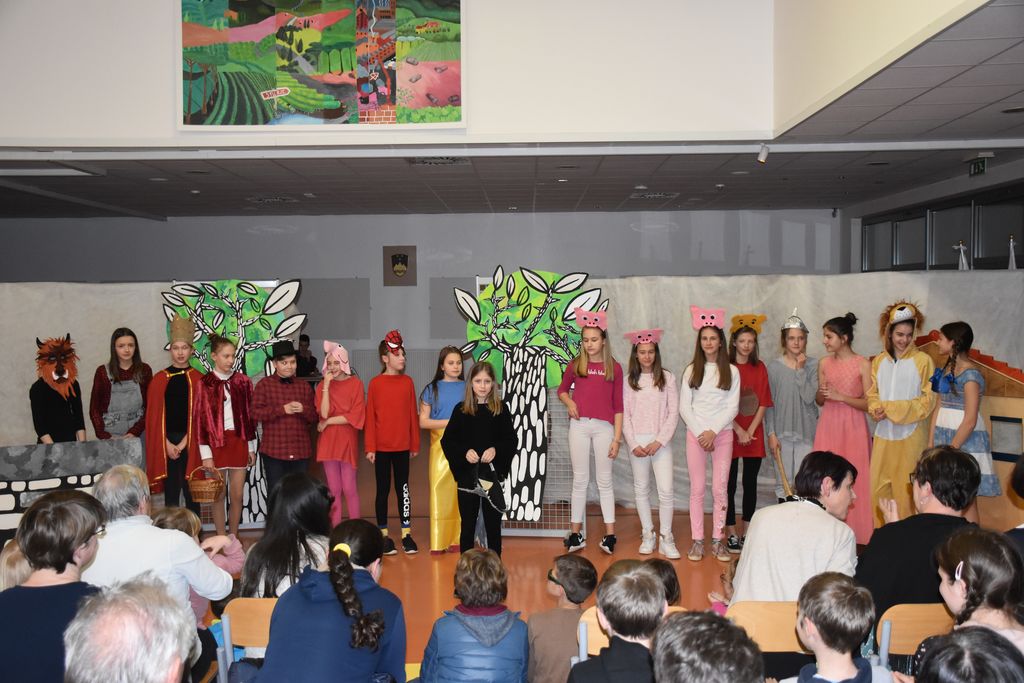 Učenci 5., 6. in 7. razredov so se pod mentorstvom Polone Mohorčič, Irene Šček in Ane Mlakar Furlan, predstavili s kar štirimi kratkimi igrami. Tako najmlajše kot tudi starejše gledalce so popeljali v svet pravljic in domišljije in hkrati pokazali veliko mero znanja angleškega jezika.