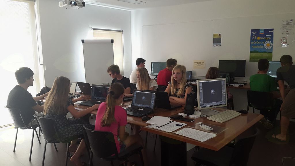 Pri delavnici so udeleženci spoznali osnove programa Blender (https://www.blender.org/) in izdelali preproste animacije. Program nam lahko pomaga ustvariti 2D ali 3D animacije. Prvi dan smo spoznavali izdelavo 2D animacije, udeleženci so pokazali izredno voljo do učenja in kot rezultat na koncu delavnice tudi predstavili svoje animacijske izdelke. V četrtek smo se ukvarjali s 3D animacijo, kjer so udeleženci prav tako blesteli, saj so nekateri v samo treh urah uvajanja samostojno izdelali kratko 3D animacijo.