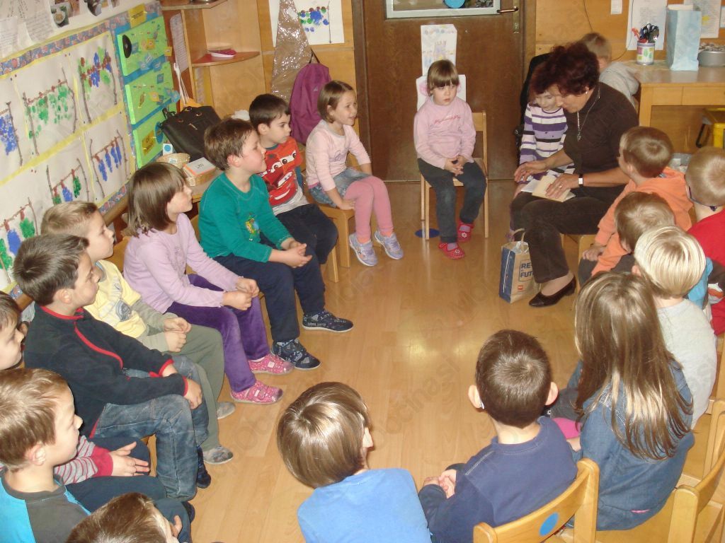 V okviru teme je k nam na obisk prišla Grozdana Uršič. S seboj je prinesla star likalnik in staro knjižico. Pripovedovala nam je ljudsko zgodbo o Rdeči kokoški. Da bi bilo pripovedovanje več kot zanimivo, je imela s seboj vse pripomočke za ponazarjanje. Otroci so jo veliko spraševali, gospa Grozdana pa jim je z velikim veseljem na vsa vprašanja odgovorila. Povedala jim je, da se je življenje nekoč razlikovalo od današnjega.
