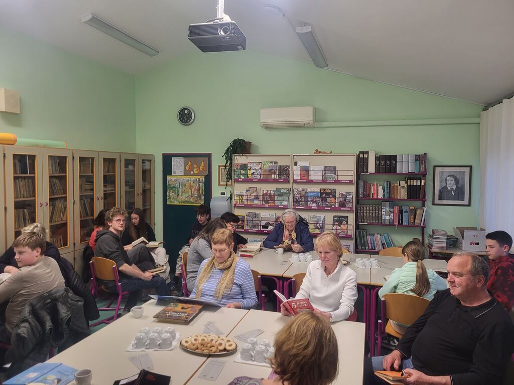 Po branju je sledil sproščen pogovor, v katerem smo si izmenjali vtise. Učenci so delili svoje bralne izkušnje ter razmišljali o tem, kaj jih pri knjigah najbolj pritegne in kako ohranjajo veselje do branja. Poseben pečat so dodali stari starši, ki so z nami delili spomine na svoje bralne navade v mladosti. Njihove pripovedi so nas spomnile, da ima knjiga v našem življenju posebno in trajno mesto.
