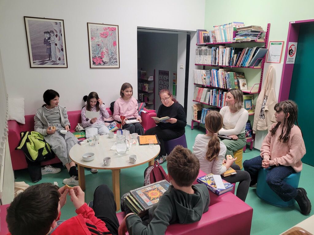 Prijeten pomladni dan je v šolsko knjižnico Osnovne šole Dobravlje prinesel prav posebno vzdušje. V torek, 24. marca, je tam potekala bralna čajanka, ki je v sproščenem druženju povezala učence, starše in stare starše ter jih povabila v svet knjig.