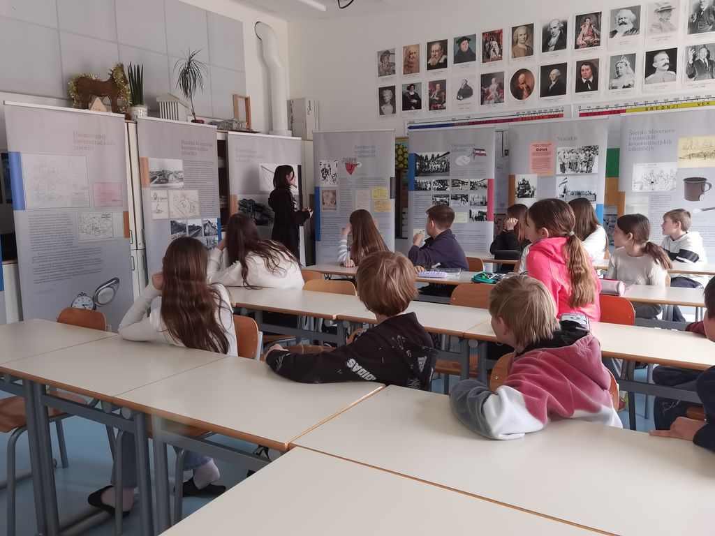 Med urami zgodovine so se nato devetošolci postavili v vlogo kustosa in učencem od 6. razreda dalje predstavili življenje Slovencev v taboriščih. V preteklem šolskem letu so na tak način naši učenci predstavili zgodbo o Ani Frank.