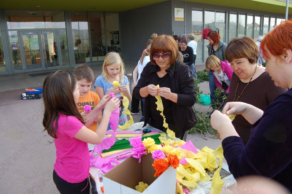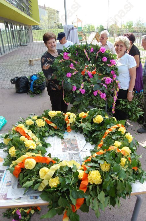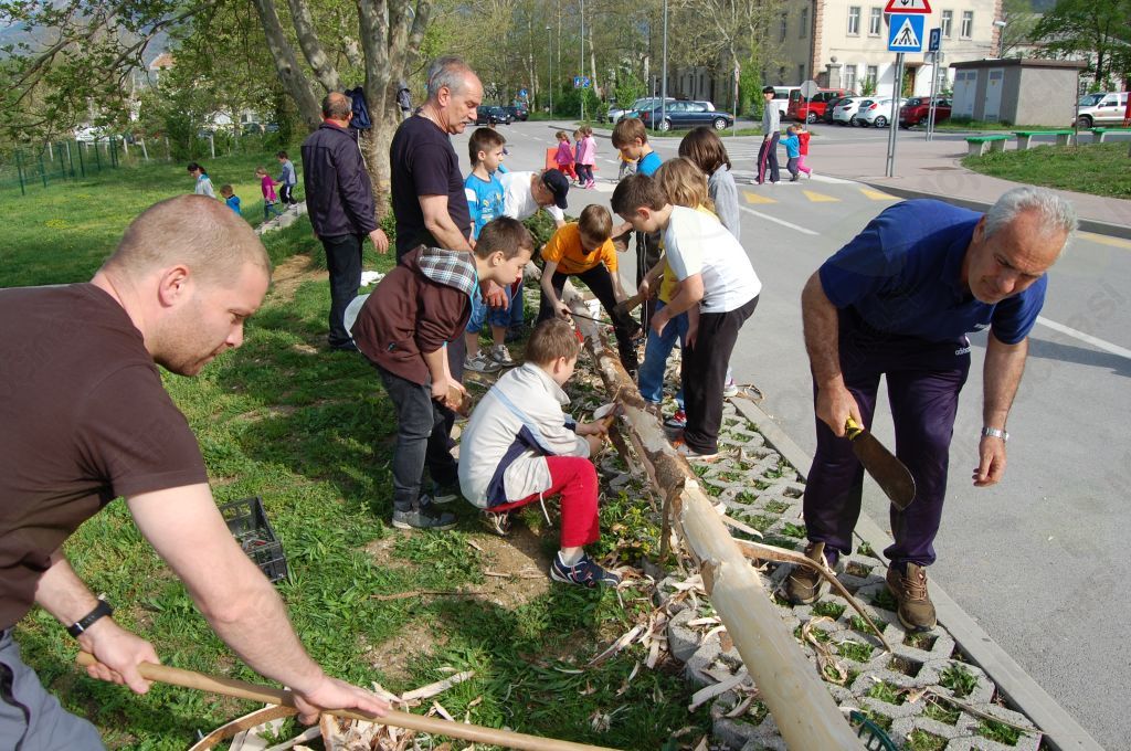 Lepo tradicijo so v šturski šoli letos zaupali četrtošolcem, ki so h krašenju mlaja povabili svoje stare starše. Ti so svojo nalogo vzeli hudo zares in se oborožili z vsem potrebnim orodjem in pripomočki ter seveda bršljanom. Za ostalo je poskrbela šola, tudi za sloko in kar visoko smreko. O dobrih izkušnjah o ustvarjalnem druženju vnukov in starih staršev je, tokratnemu izzivu na pot, spregovorila ravnateljica Ava Curk, ki je z nagovorom tudi odpihnila začetno zadržanost. Večina namreč še ni imela kakšnih pravih izkušenj z mlajem, vendar je organizacija dela hitro stekla – učenke in 'none' so iz bršljana spletale venčke in jih ozaljšale s papirnatimi cveticami in pisanimi trakovi, ki so sproti nastajali pod spretnimi prstmi. Moški del si je dal najprej opravka z odstranjevanjem lubja, nato kar zahtevnim vezanjem vseh treh vencev in seveda nič kaj enostavno nalogo, mlaj dvigniti in postaviti v navpičen položaj.