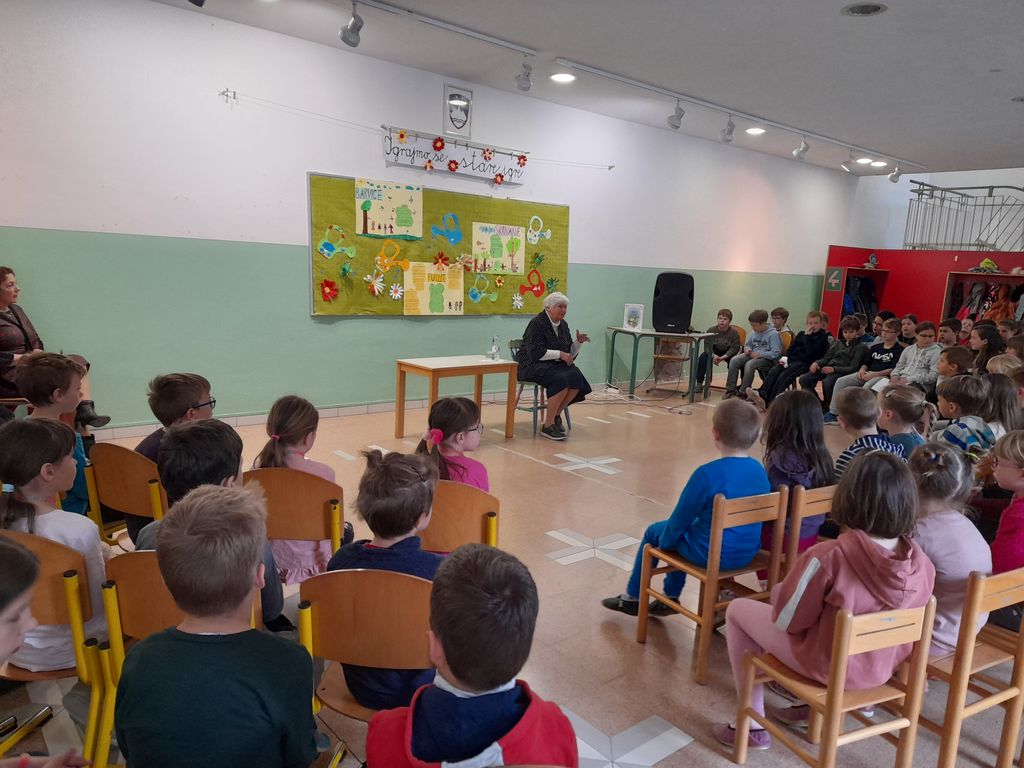Najprej je s svojimi očarljivimi pripovedkami, pesmimi, petjem in pogovorom z učenci razveselila učence in učiteljice na podružnični šoli v Vipavskem Križu. Nato so jo z navdušenjem sprejeli na podružnični šoli v Črničah. Zatem je imela še nastop za učence podružnične šole Skrilje, ki so se pridružili učencem petega razreda na matični šoli. Zadnji nastop pa je bil posvečen učencem od 6. do 9. razreda. Starejšim učencem je z zanosom razlagala pomen zgodovine našega naroda skozi ljudsko dediščino, ki smo ga podkrepili s petjem ljudskih pesmi.