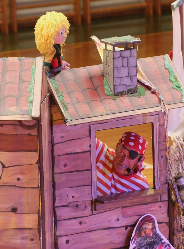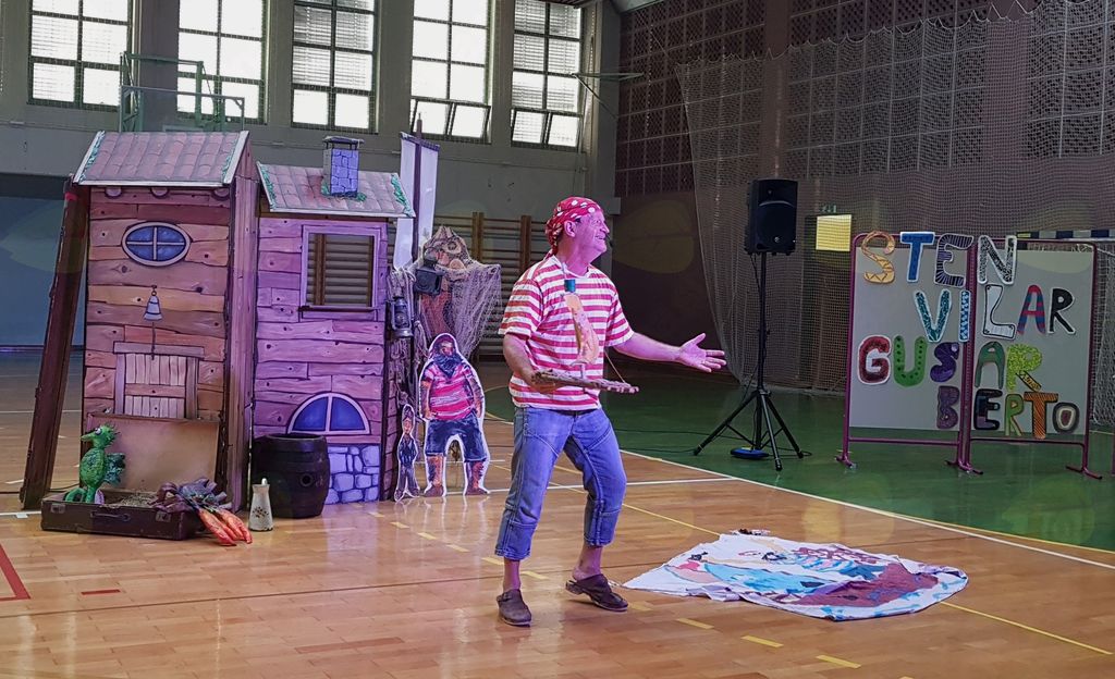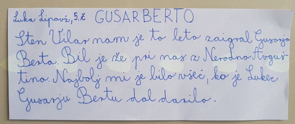 Pedagog, animator in igralec nam je odigral čudovito zgodbo o Gusarju Bertu in njegovem malem prijatelju Luku. O medčloveških odnosih, prijateljstvu povezanosti med starimi in mladimi, osamljenosti in zagrenjenosti ter rešitvi zanju nam je z besedo, glasbo in igro prikazal svetlejšo plat človeškega življenja.