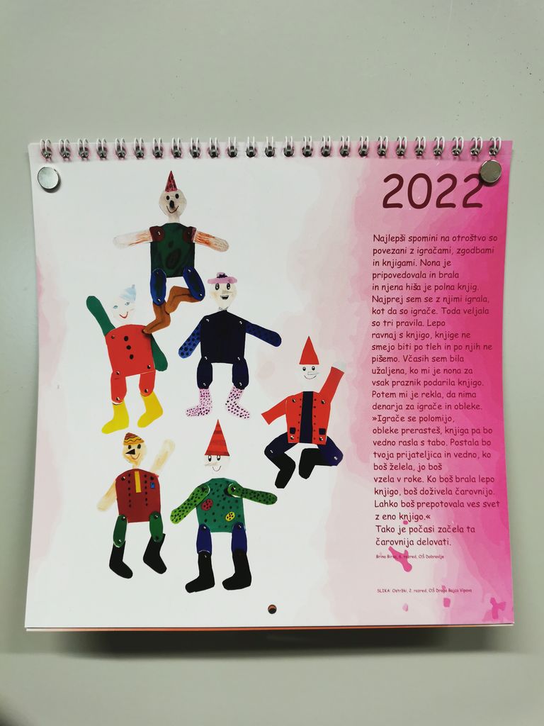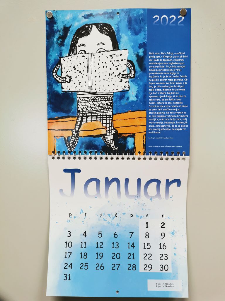 Še veliko odkritosrčnih otroških izpovedi je zbranih v koledarju. Besede so obogatili likovni prispevki, ki prav tako izpovedujejo odnos učencev do knjig in do branja.