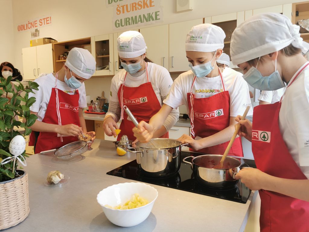 Kot mentorica pa lahko le dodam, da sem ponosna na svoje učence kuharje, saj so tokrat naši gurmani zares kuhali uigrano, nasmejano, energično, odgovorno, kot bi se za štedilniki sukali vsak dan – večkrat.