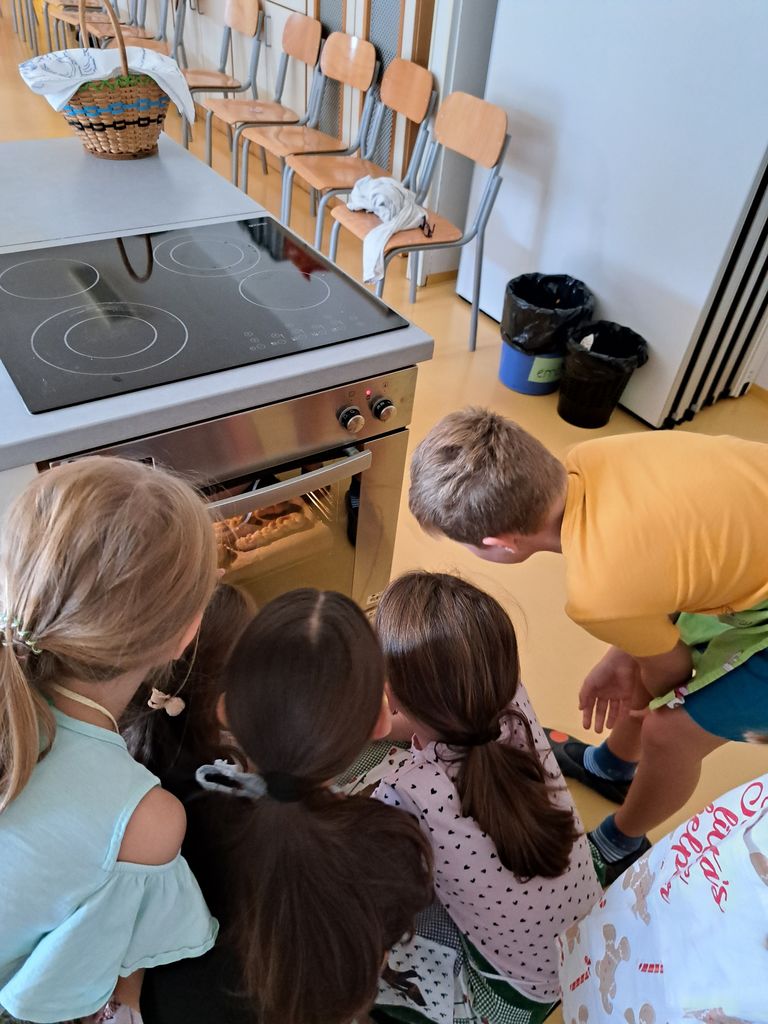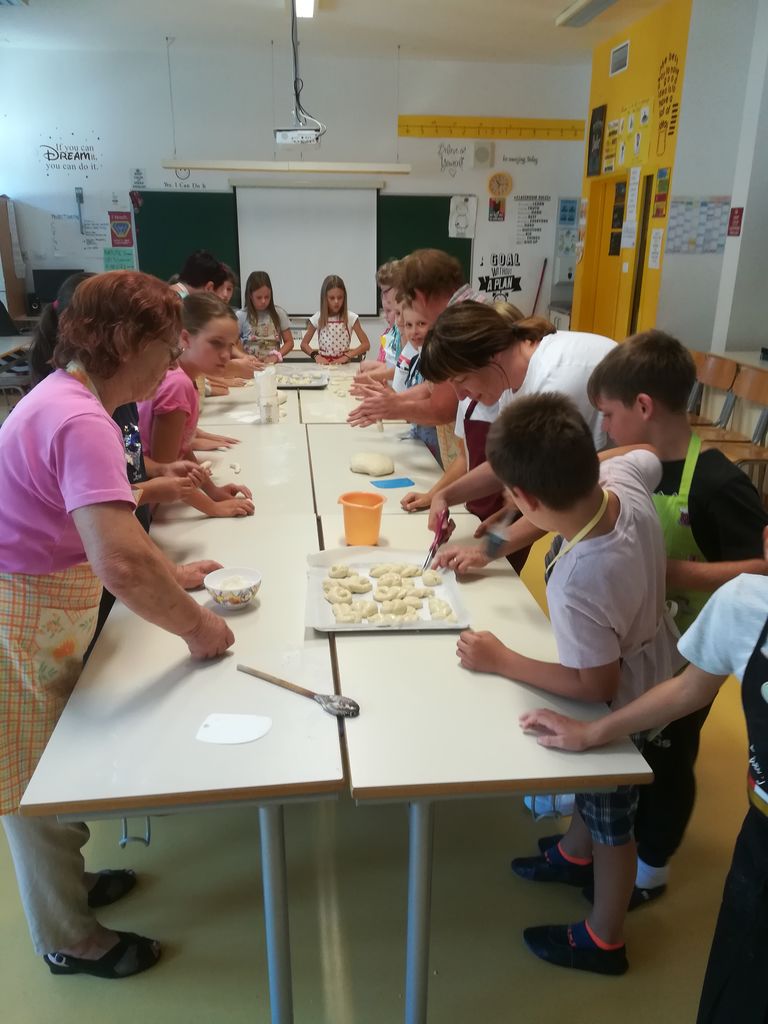 Tudi mi smo si povedali svoje izkušnje s peko kruha, nato pa z zanimanjem spremljali gospe s Planine, ki so nam zaupale svoj recept za hlebčke, ki so jih v naši navzočnosti zamesile in oblikovale. Z veseljem in zagnanostjo smo se lotili dela in oblikovali kruhke najrazličnejših oblik. Ni minilo veliko časa, ko je po celi šoli zadišalo. Komaj smo dočakali, da smo svoje kruhke poizkusili in … mmm, kako dobri so bili! Z navdušenjem smo svoje izdelke podelili tudi med ostale učence naše šole in zaposlene.