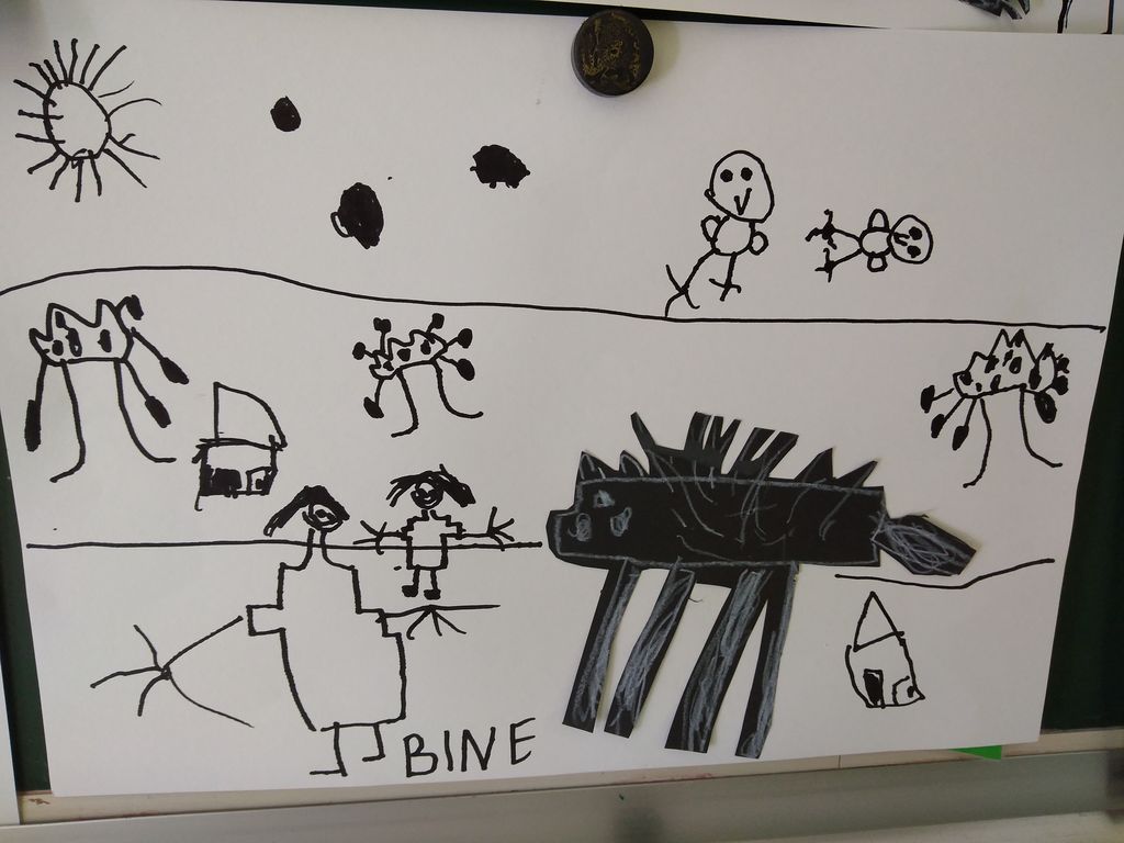 Učiteljica Keti je učencem pred likovnim ustvarjanjem predstavila psa, da so si ga lahko natančno ogledali, potem pa poustvarjali in narisali psa. Nastala je lepa razstava.