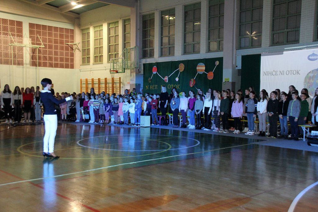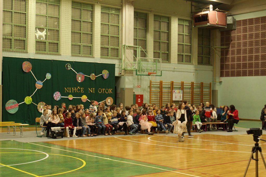 Podnaslov letošnje prireditve in rdeča nit je bila misel 'Nihče ni otok' in želja, da se med nami resnično nihče ne bi počutil sam v nesreči ali osamljen nasploh. Za nekaj trenutkov smo se preselili v svet zaigranih prizorov in glasbe z bogatim sporočilom, dvorano je napolnilo petje pevskega zbora in glasba šolskega ansambla.