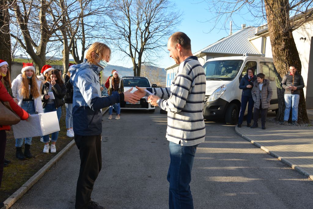 Dobrodelni smo bili tudi učenci in učenke 9. b razreda OŠ Šturje Ajdovščina. Obiskali smo varovance VDC-ja v Ajdovščini. Da bi bilo med obiskom vzdušje bolj prijetno, smo ob spremljavi viole in zvončkov zapeli pesem 'Tisoč iskric smo prižgali'. Vsakemu varovancu smo osebno izročili majhno pozornost. Podarili smo jim zvončke za božično jelko, te pa smo v prazničnem vzdušju izdelali na šolskem tehniškem dnevu.Lepo nam je bilo, saj so se naše pozornosti razveselili.