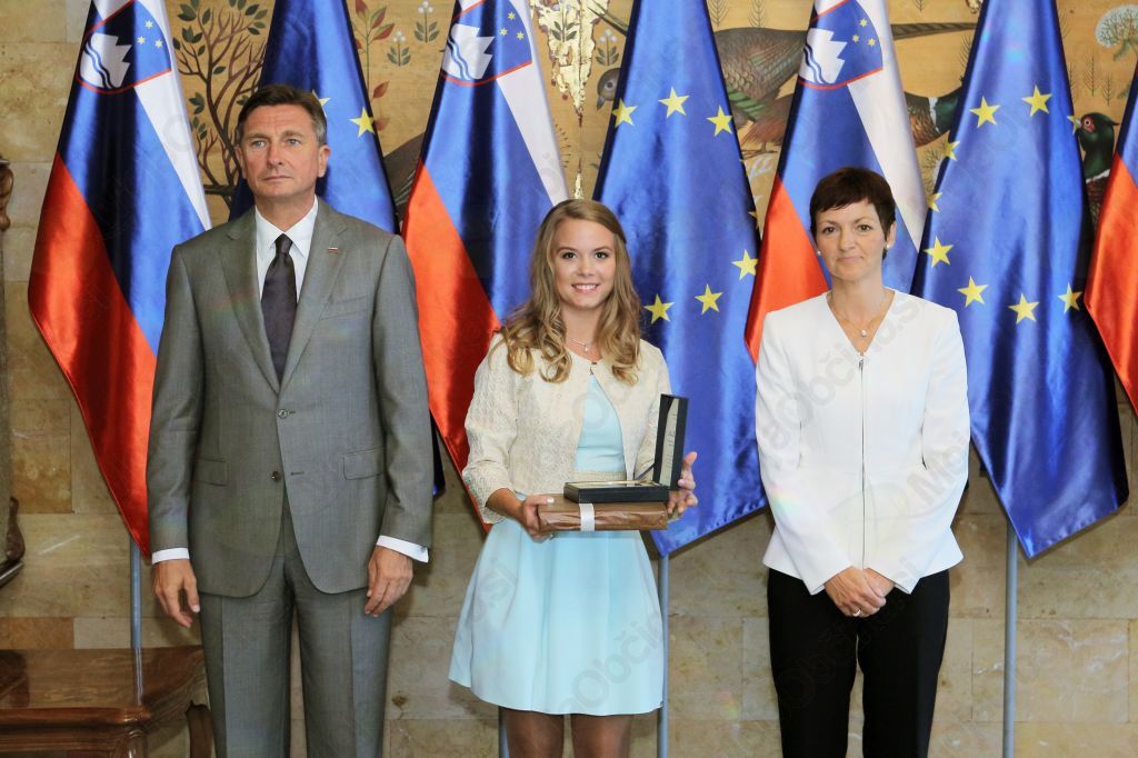 19. septembra se je skupaj z družino in ravnateljem ŠGV udeležila slovesnega sprejema na gradu Brdo pri Kranju, ki sta ga pripravila predsednik Republike Slovenije Borut Pahor in ministrica za izobraževanje, znanost in šport dr. Maja Brenčič Makovec. Ministrica je ob tem poudarila: »Odlika na maturi je izjemen uspeh, zato je prav, da vam čestitamo in se vam poklonimo. Sprejem za najboljše maturante je v Sloveniji tradicija. Je poklon odličnosti v znanju, na čemer veljagraditi prihodnost". Predsednik Pahor, ki je nagrajencem podaril zlato sovo modrosti, pa je mladim med drugim priporočil, da hodijo za svojim srcem, razmišljajo izven okvirjev in naj pokažejo, da so oni tisti, ki bodo oblikovali prihodnost.