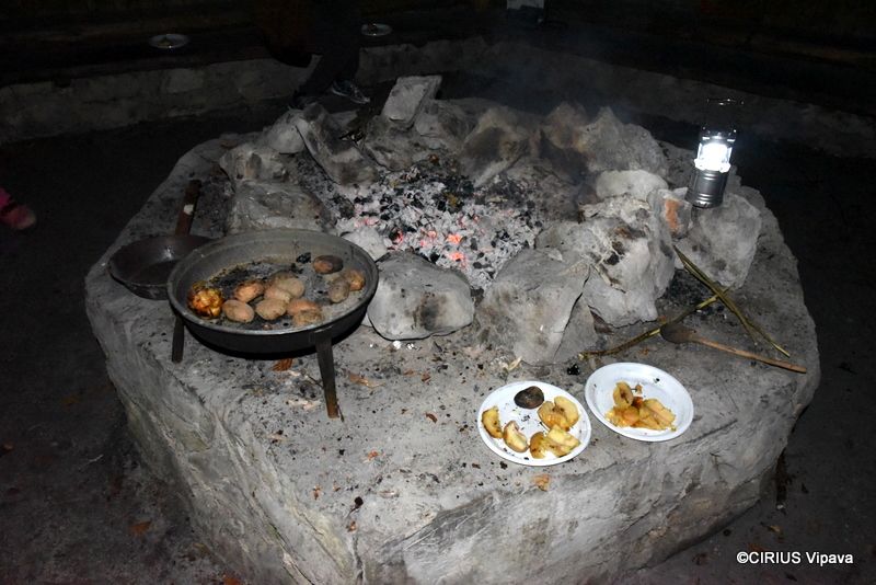 Srečanja organiziramo v bližini Ciriusa, v parku, ob gasilskem domu, ob reki, na travniku. Prostor srečanja, učenja in druženja je bil to jesen tudi Nanos. Doživeli smo ga pod zvezdnatim nebom in v temi. Mentorji interesne dejavnosti Outdoor in osem naših učencev smo v gozdu doživeli nove izkušnje v temi. Rahlo nelagodje in mogoče malce strahu je pregnala dobra družba okrog ognja. Zapeli smo našo himno in še nekatere druge pesmi. Učenci so prisluhnili zvokom jesenskega gozda, šumenju listov, prasketanju plamenov, živalim v gozdu… Doživeli so pripovedovano pravljico: Kako je iz travnika nastal gozd, ob tem spoznali nekatera drevesa v bližini, njihove dele, plodove, izgled, vonj, strukturo skorje… Poskusili so se v žaganju lesa in sekanju drv. Na kurišču smo si pripravili večerjo, na žerjavici smo spekli krompir, hrenovke, jabolka in kostanj.