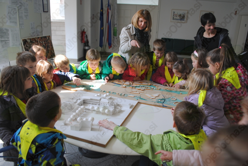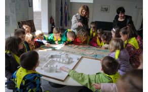 Skupina namreč pripravlja prav poseben arhitekturni projekt - izdelujejo grajski stolp, rišejo načrte za telovadnico pri svojem vrtcu ob Hublju, naredili pa bodo tudi maketo starega mestnega jedra. Prav makete so bile razlog njihovega obiska. Z velikim zanimanjem so si jih ogledovali v avli občinske stavbe, polni so tudi idej za nove vsebine na Lavričevem trgu, kjer jih najbolj moti pločevina. Mimogrede so prešteli še zvezdice na evropski zastavi, nato pa zadovoljni odšli na kosilo.