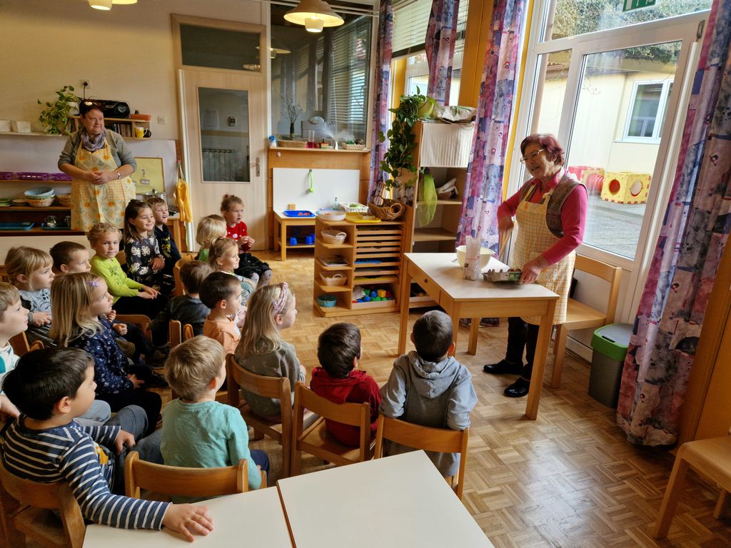 Že drugo šolsko leto smo otroci iz skupine Žirafe vključeni v projekt Turizem in vrtec. Letošnja izbrana tema je Okusni zakladi – lokalni kulinarični spominki s trajnostnim pridihom. Z otroki tako spoznavamo hrano in jedi, ki so značilne za naše lokalno okolje. Vsak mesec skupaj pripravimo eno tradicionalno jed iz naših krajev, pri čemer nam pomagajo stari starši, starši in različna okoliška društva.