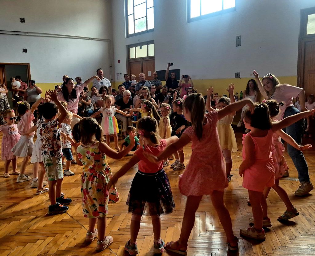 Osrednji in najpomembnejši del pa je bil namenjen seveda najmlajšim zaradi katerih smo se tudi zbrali. Med plesi je posebno pozornost pritegnil ples o snežaku Olafu, ki se ob toplih žarkih počasi stopi, saj smo ga odplesali z baloni. Poletno vzdušje je prinesla koreografija s sončnimi očali, čisto na koncu pa smo se zabavali še ob skupnem plesu, ki so se ga starši naučili kar na licu mesta.