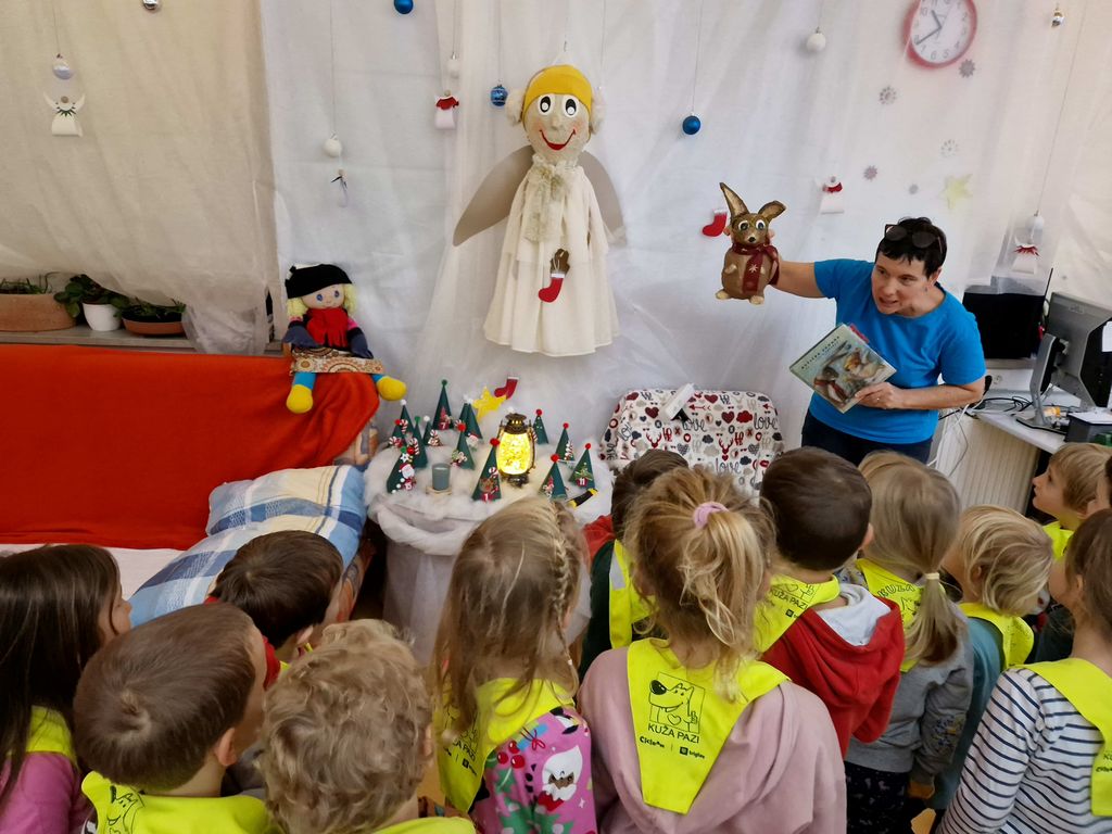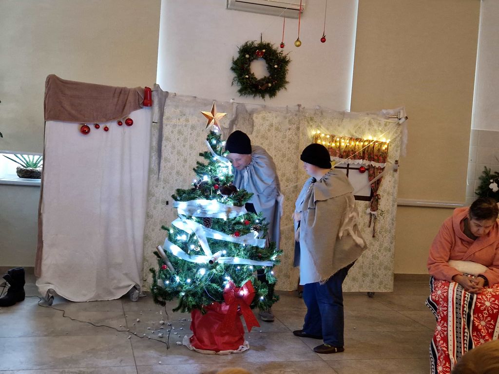 Mesec december je poseben čas, ko se med seboj še bolj povežemo in si vzamemo čas za bližnjega. Tudi otroci iz skupine Žirafe iz vrtca Ajdovščina radi spoznavamo nove ljudi in z njimi sodelujemo. Tako smo se odzvali prijaznemu povabilu gospe Matejke Štrukelj, ki nas je povabila v Varstveno delovni center v Ajdovščini na ogled predstave z naslovom 'Srebrni okras za božično drevo'. Predstavo so nam zaigrali varovanci VDC-ja s pomočjo njihovih mentorjev. Zgodba nam je razkrila, kako je božična smrečica dobila svoj prvi okras, ki sta ga spletla dva pajka s pomočjo Božičkovega čarobnega prahu.