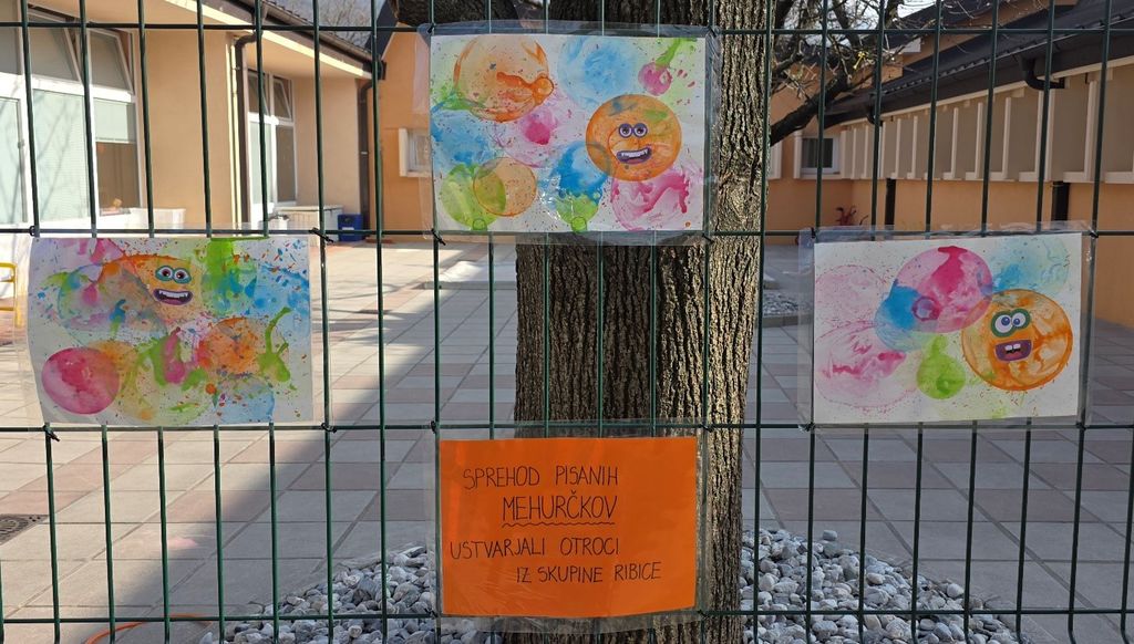 Otroci iz skupine Ribice enote vrtca Ob Hublju so z navdušenjem sodelovali v ustvarjalni delavnici, kjer so izdelovali pisane mehurčke na listu papirja. Vsak otrok je prejel odrezano plastenko, barvno raztopino in list papirja. Najprej so potopili plastenko v barvno raztopino in nato nežno pihali, da so se oblikovali mehurčki. Mehurčki, polni barve, so se razpočili ob dotiku z listom, pri čemer so ustvarili čudovite in unikatne barvne vzorce.