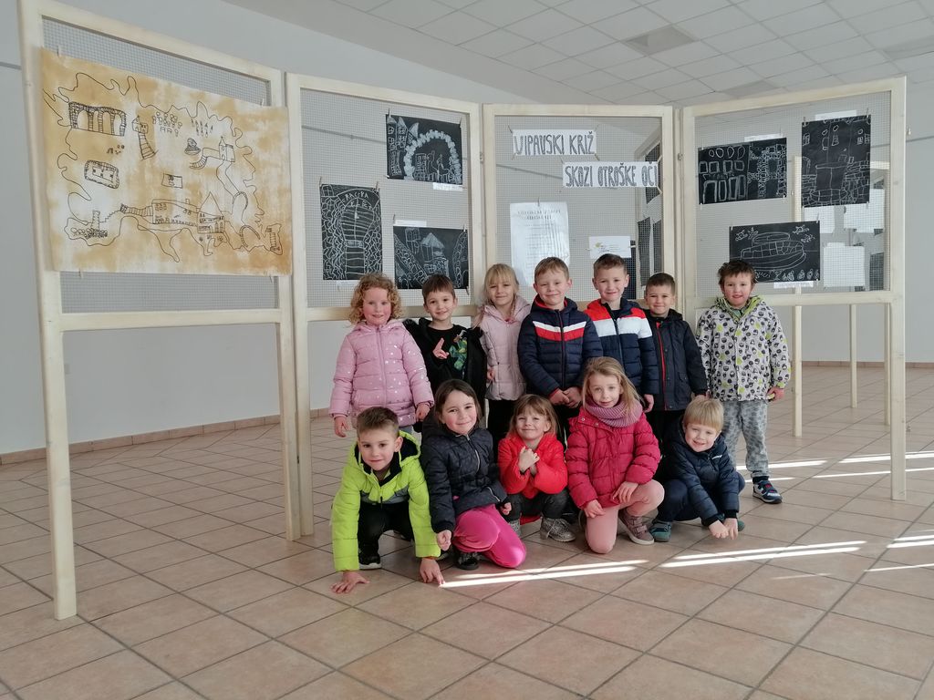 Vse vtise in predano znanje smo tudi likovno upodobili. S pomočjo črnega tuša in bele voščenke smo ustvarili čudovite podobe Vipavskega Križa, ki smo jih širši javnosti predstavili na razstavi z naslovom 'Vipavski Križ skozi otroške oči'. Izdelki so bili na ogled v Domu krajanov. Izdelali smo tudi čisto svoj zemljevid ter spesnili pesmico v čast Vipavskemu Križu.