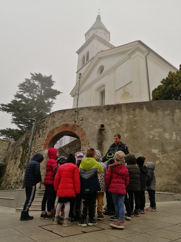 Želeli smo si podrobneje spoznati zgodovino kraja, kjer vsakodnevno obiskujemo vrtec, zato smo za eno dopoldne postali turisti in prisluhnili zgodbam, ki nam jih je na prisrčen način zaupal Patrik Zgonik iz Zavoda Vipavski Križ, ki že vrsto let vodi turistične oglede po Vipavskem Križu. Otrokom najbolj prikupna je bila zgodba o zmaju, ki še danes leži na vrečah zlata pod vodnjakom ob glavni cerkvi. Ogled smo zaključili v grajski kleti, kjer nas je gospod Patrik pogostil s kozarčkom grozdnega soka.