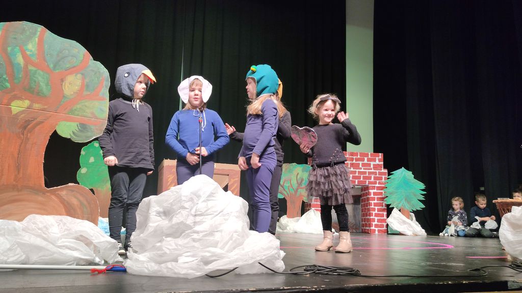 Vse štiri skupine – Levčki, Slončki, Žirafe in Zebre smo se na decembrsko srečanje za starše pripravljale kar dva meseca. Ob poslušanju zgodbice Svetlane Makarovič: Sapramišja sreča smo spoznavali pomen prijateljstva, medsebojne pomoči in prave sreče. Te vrednote smo nato prenesli na vaje in kasneje tudi na oder. Otroci so se več tednov trudili, vadili besedilo, se učili pesmic in koreografij ter nestrpno pričakovali dan nastopa.